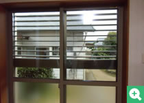 〈 1階居室 〉 電動雨戸ルーバーです。防犯と景色が見られるという両方が叶いました。 |